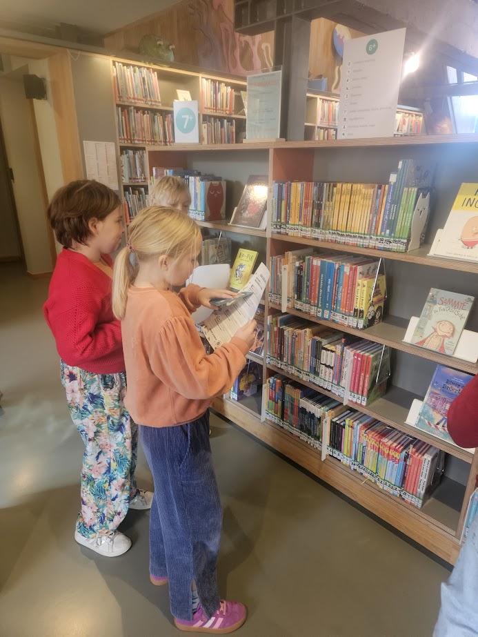 In de klas hadden we al wat opzoekingswerk gedaan, dus na een korte uitleg van de medewerker konden we meteen op boekenjacht gaan!